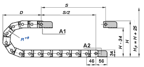 För nya konstruktioner rekommenderar vi den tekniskt optimerade e-kedjeserien 2500 från igus® E2/000 program.