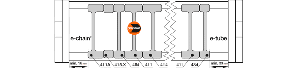 För nykonstruktioner rekommenderar vi den tekniskt optimerade e-kedjeserien E4.56 ur igus® byggsats E4.1.