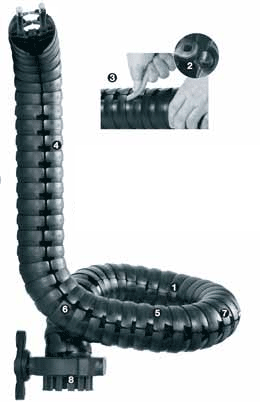per kedjelänk möjlig i längdaxeln. Detta underlättar dragning av kablarna runt svåra geometrier