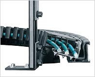 Cirkelrörelser med twisterchain - twisterchain produktlinjen erbjuder ett stort urval för cirkelrörelser. twisterchain applikationer finns med styrränna, som har följande fördelar: styrning av e-kedjan, reducerad nötning av e-kedjan, optimal lugn gång, upp till 360° rotationsvinkel. Styrrännans modulära konstruktion möjliggör en större kedjelängd, olika böjningsradier och flera vridningar.