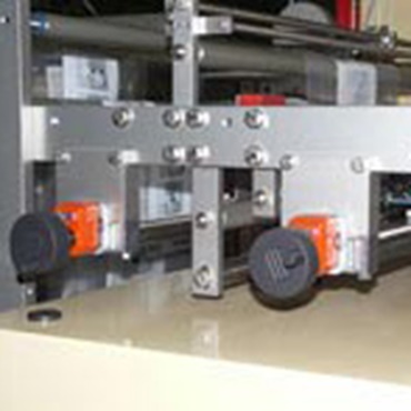 Formatjustering av sensorerna för avkänning av bankanter och tryckmärken med drylin® SLW linjärbordslösning med lägesindikator och handratt (bekväm och reproducerbar positionering utifrån).