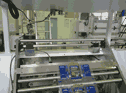 In this packing machine, the boxes are discharged at the end of the process via the ejector unit by means of a pivoting movement.