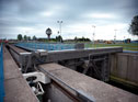 Salt water resistance and compensation for sideways motions for lock-gate operations.