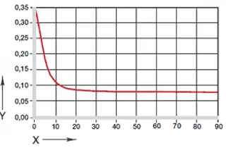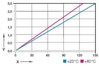 Det maximala rekommenderade yttrycket utgör en mekanisk materialparameter. Slutsatser om tribologin kan inte dras från den. tryckhållfastheten hos iglidur® X6-lager minskar med ökande temperaturer. Fig. 02 illustrerar detta förhållande.
