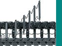 Långa förflyttningsvägar och extrem förflyttningshastighet vid kabellaster t. o. m. 50kg/m. Finns som kabelkedja med tvärslåar i varje länk eller som slutet kabelrör.